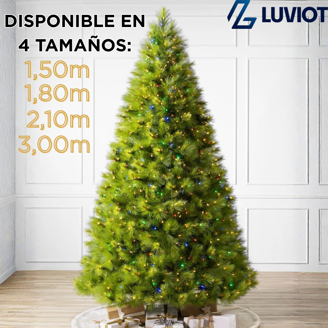 Nuestro árbol de Navidad artificial con luces está fabricado con bisagras de metal y sus ramas de PVC ignífugo, lo que lo hace más duradero y garantiza total seguridad para su uso en interiores.