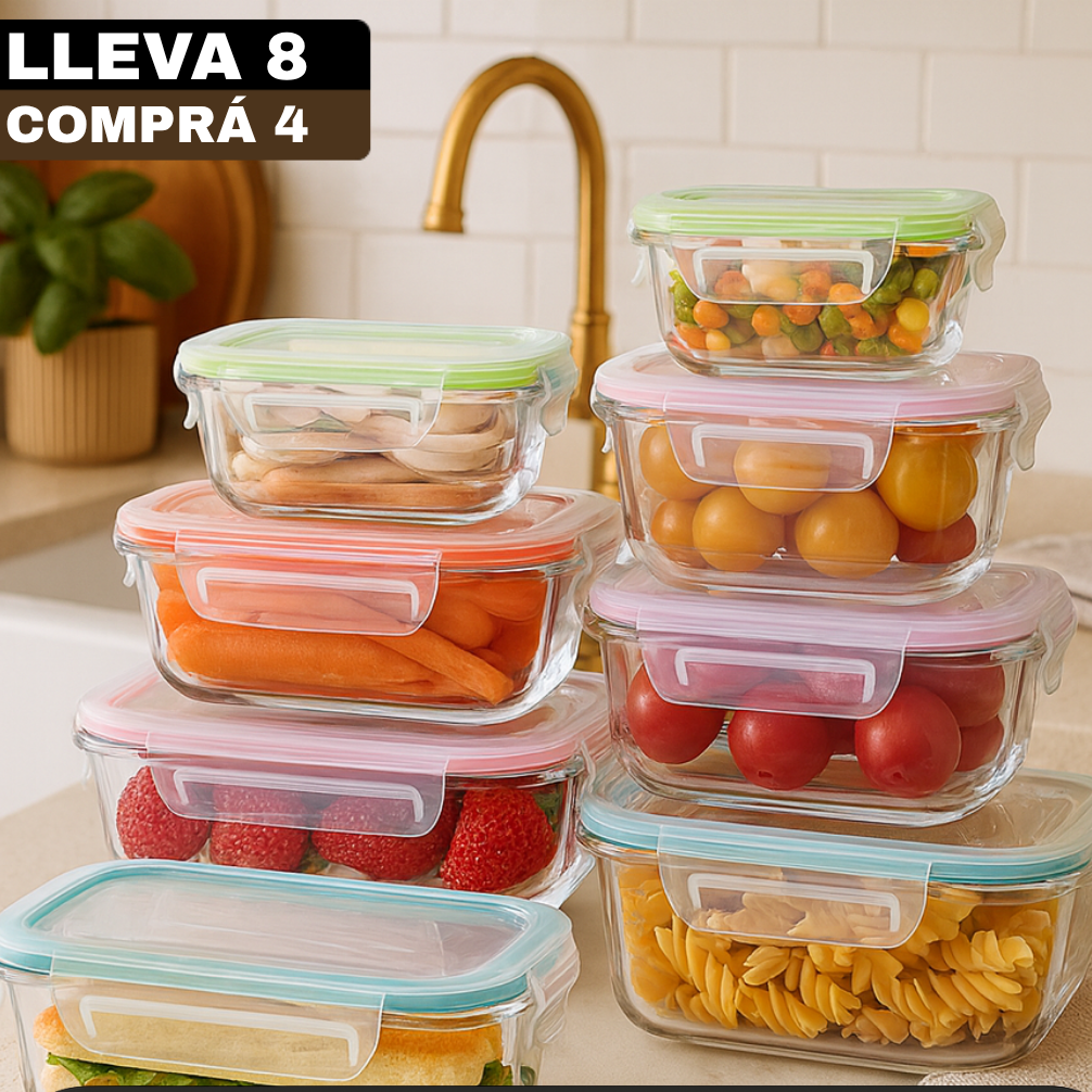 El Kit de Potes Herméticos de Vidrio Templado combina resistencia, elegancia y practicidad en cada detalle. Pensado para mujeres que disfrutan del orden, la estética y los buenos materiales, este set transforma la rutina de la cocina en un momento más simple, limpio y encantador.Su diseño transparente y apilable le da a tu cocina un aire moderno y prolijo, ideal para mantener todo organizado con un toque de sofisticación.